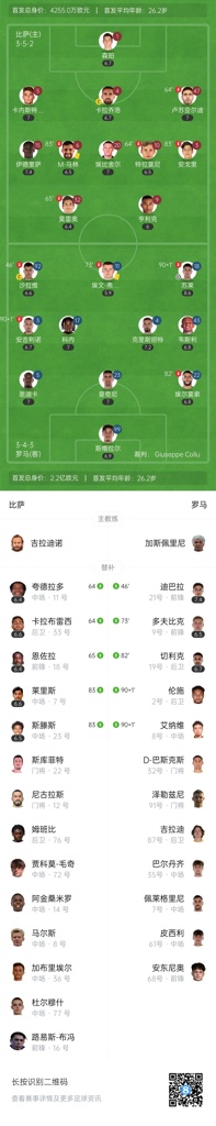 第55分钟,罗马打破僵局!埃文-弗格森禁区内接到横传做球,苏莱直接左脚推射破门!罗马1-0领先比萨↓